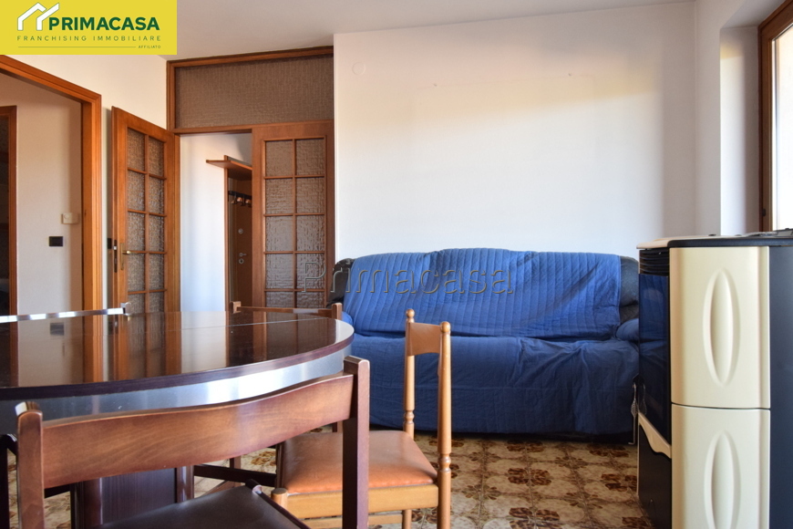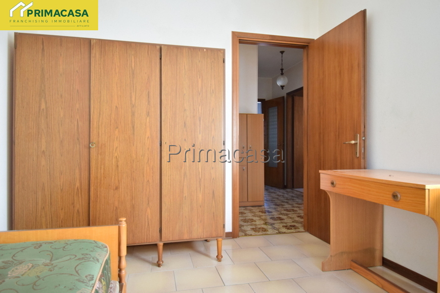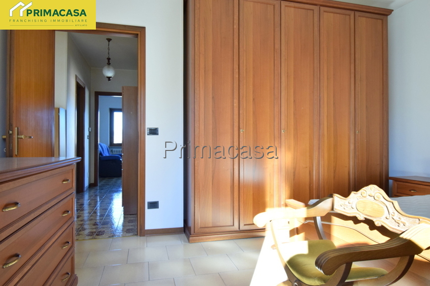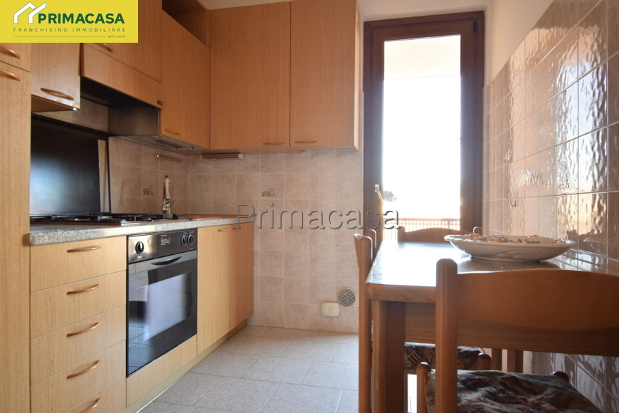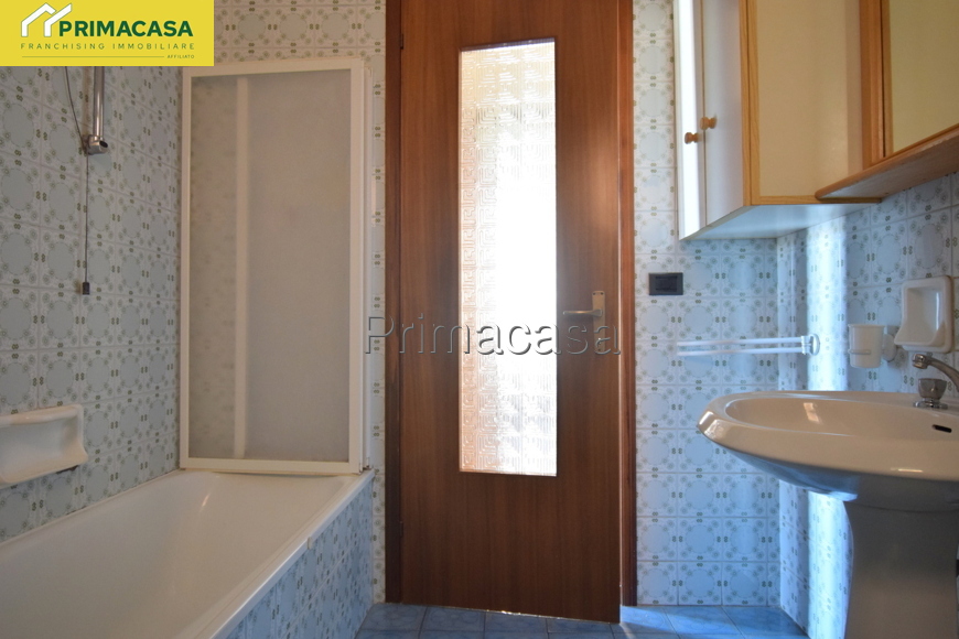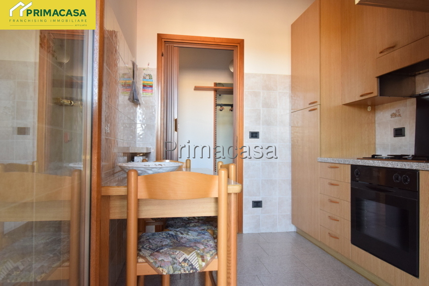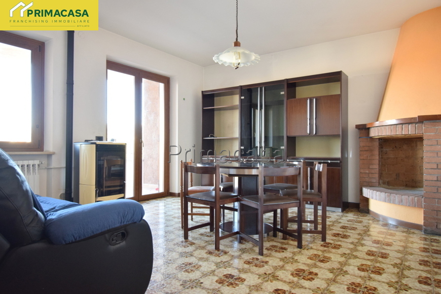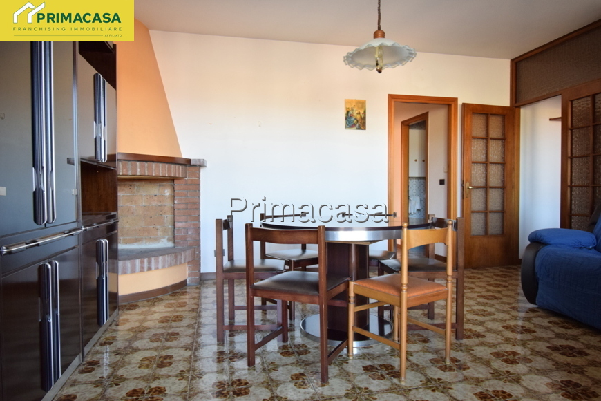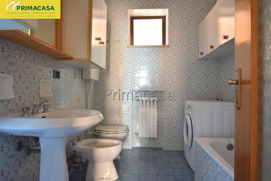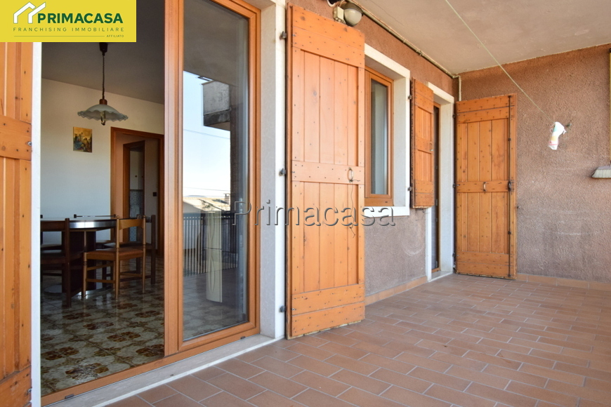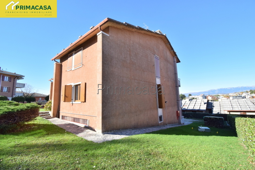 In zona tranquilla e comoda ai principali servizi, si propone appartamento 5 locali al piano terra così composto: ingresso, cucinotto e soggiorno con accesso ad un comodo balcone con vista panoramica, 3 camere da letto (1 matrimoniale di mq 15,16 e 2 singole di mq 10,30 e 10,45) bagno finestrato con vasca e attacco per la lavatrice, ripostiglio. Completano la proprietà un'ampia cantina di mq 12 ed un ampio garage singolo di mq 22. Dettagli e particolarità: porta blindata, serramenti esterni e interni in PVC, stufa a pellet collegata all'impianto di riscaldamento con radiatori, camino a legna. La disposizione dell'appartamento permette con facili modifiche di realizzare una zona giorno open-space.